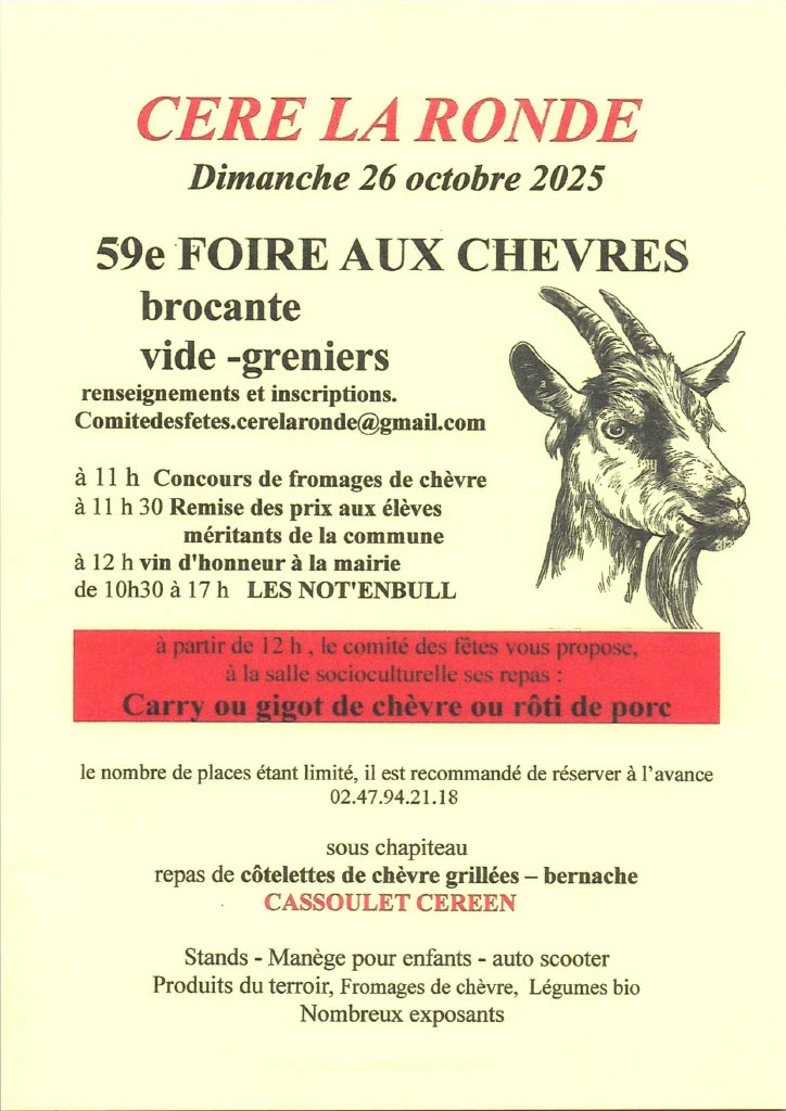 La 59è me Foire aux chèvres de Céré la Ronde se tiendra le dimanche 26 octobre.